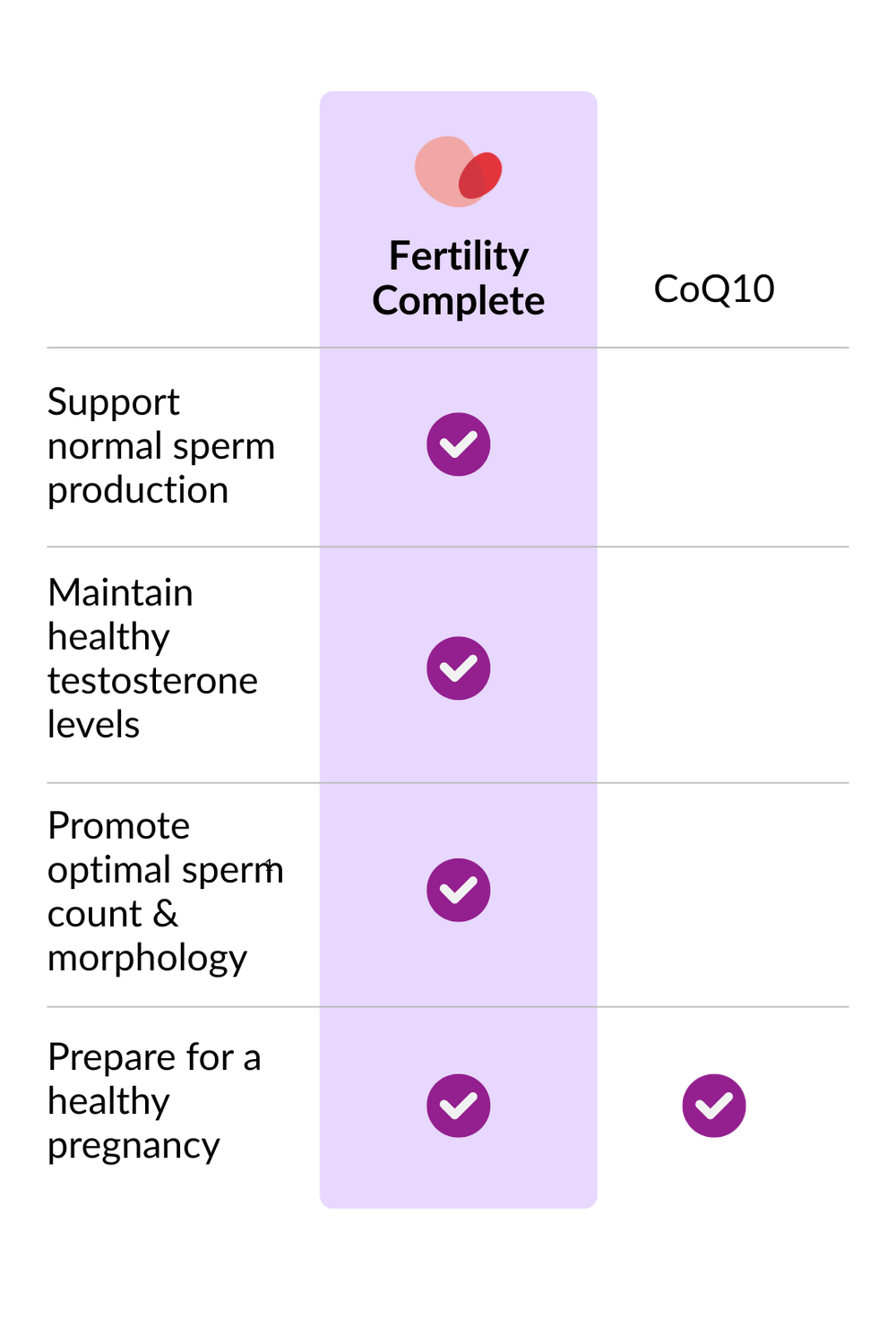 CoQ10: Protects sperm from oxidative stress and boosts sperm energy required to swim effectively.³